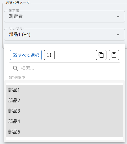 - 縦持ちの場合: サンプル名 列と 測定値 列を選択します。