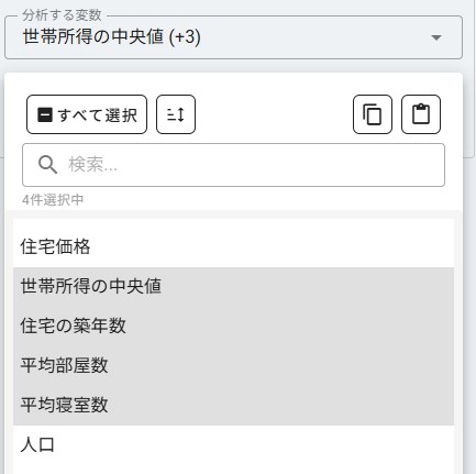 分析する変数 を選択します。数値列から複数選択できます。