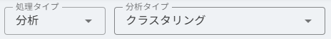 処理タイプ>分析タイプ>クラスタリング を選択します。
