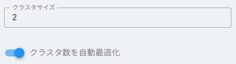 - クラスタ数を自動最適化 を有効にすると、自動最適化の設定が優先されます。