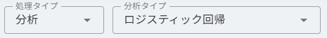 処理タイプ>分析タイプ>ロジスティック回帰 を選択します。