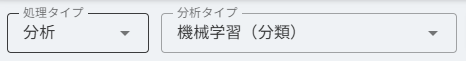 処理タイプ>分析タイプ>機械学習(分類) を選択します。
