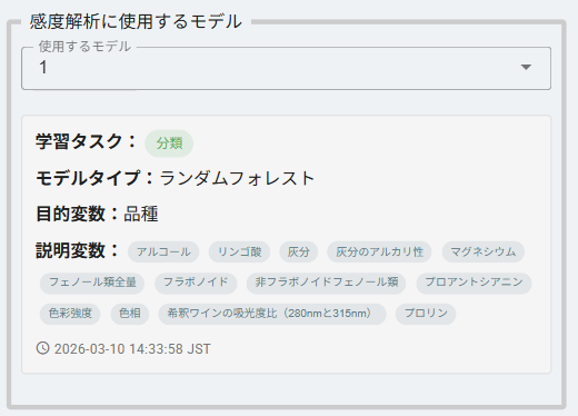 分類モデルの構築・感度分析を実施できます。 目的変数に対する説明変数の影響の把握も可能です。
