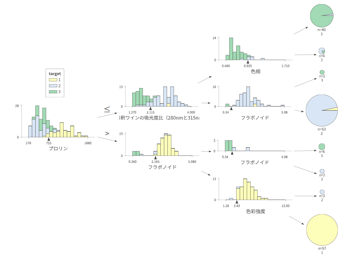 木構造で分類ルールを可視化でき、直感的に判断基準を確認できます。