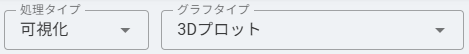 処理タイプ>可視化、グラフタイプ>3Dプロット を選択します。
