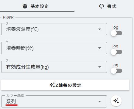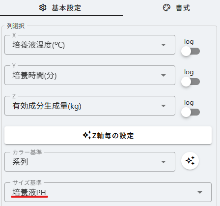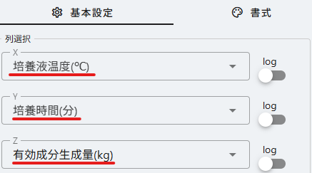X軸、Y軸、Z軸に使用する数値変数をそれぞれ選択します。