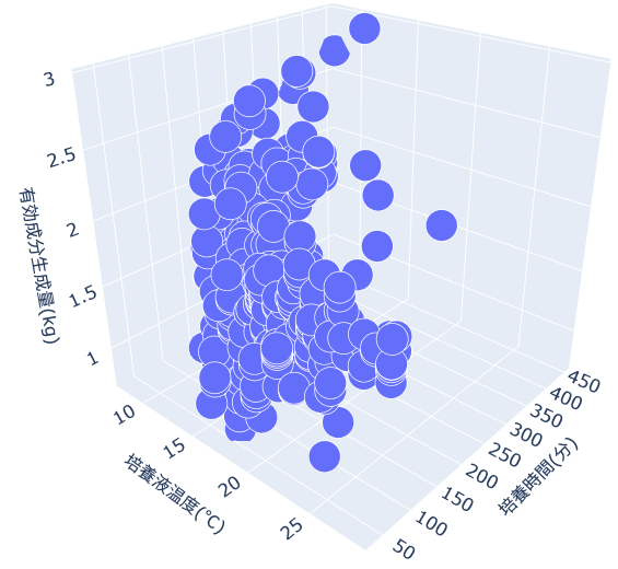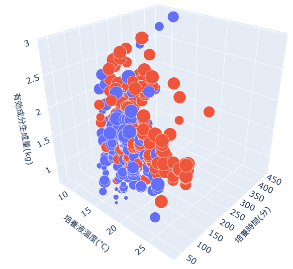 指定した数値列の値をプロットサイズに反映した3Dプロットを作成できます。