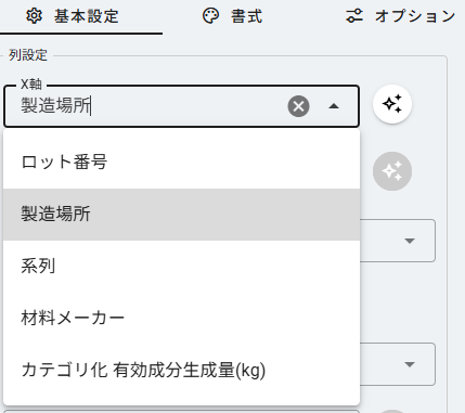 X軸(横軸のカテゴリ)列を選択します。第2X軸と合わせて最大2つまで選択できます。