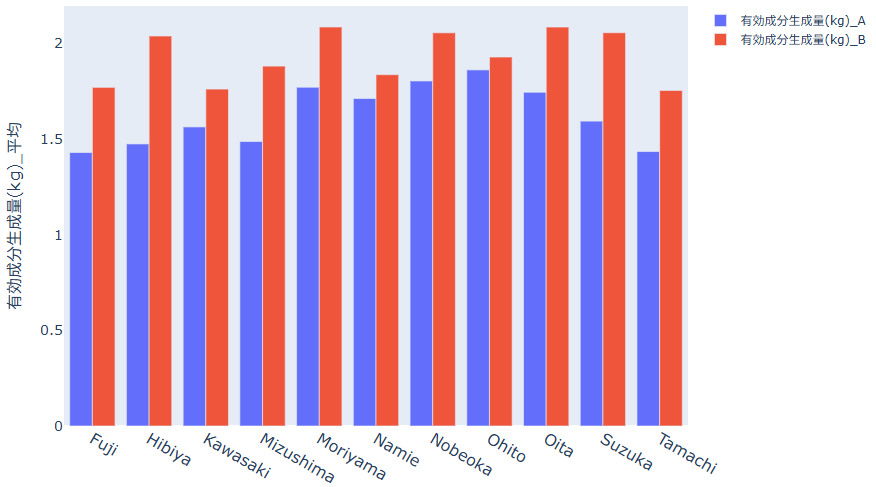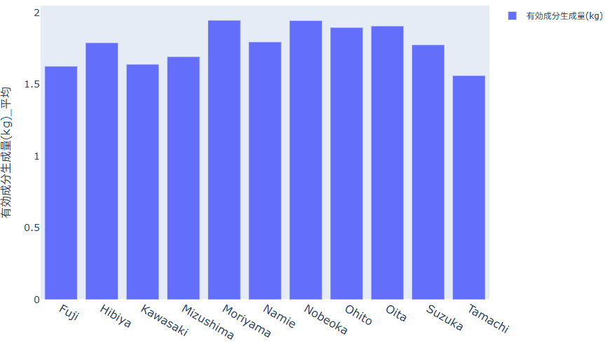 各地区の"有効成分生成量"の平均値が棒グラフ化されます。