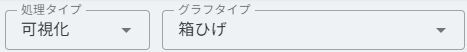 処理タイプ>可視化、グラフタイプ>箱ひげ図 を選択します。