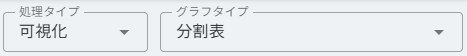 処理タイプ>集計、グラフタイプ>分割表(クロス集計表) を選択します。