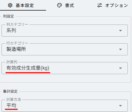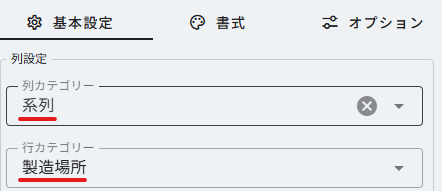 行・列に使用するカテゴリ変数を選択します。