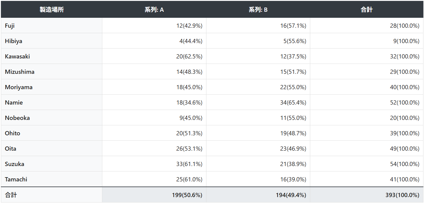 分割表での確認ポイント分割表を確認することで、以下の情報を視覚的に把握できます: