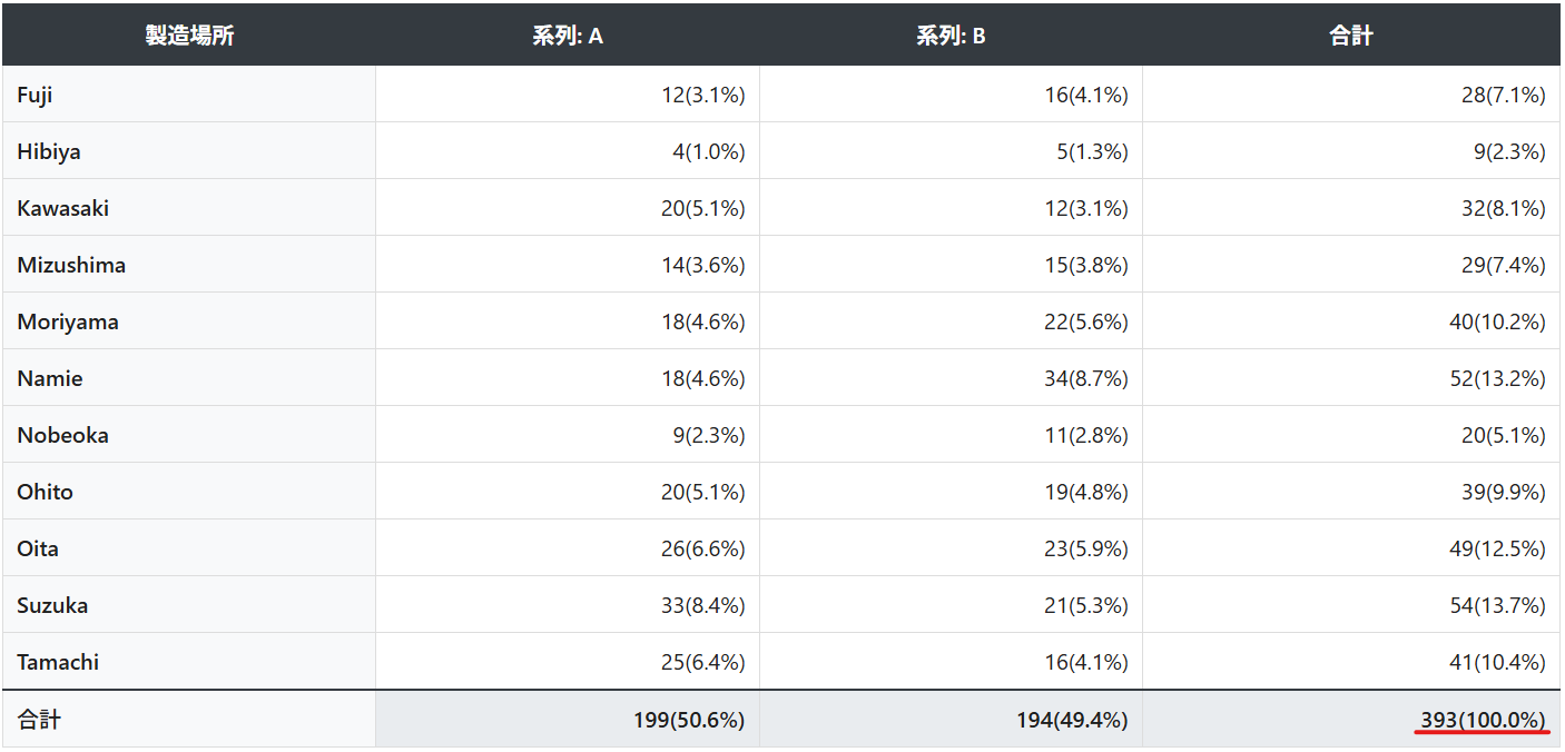 - 各セルの件数や割合
